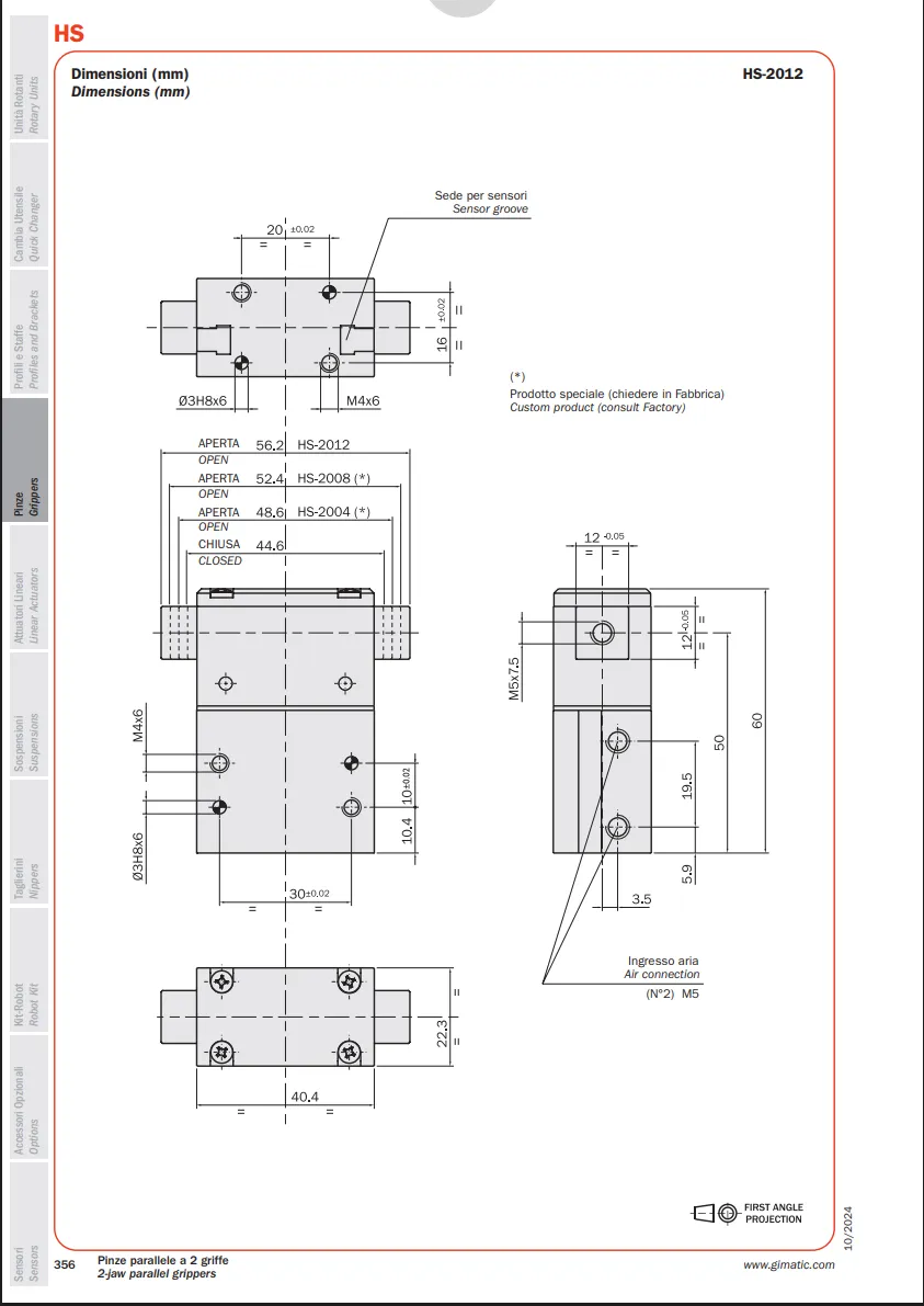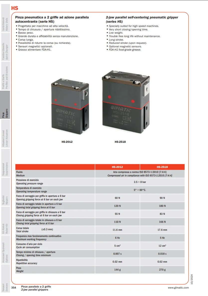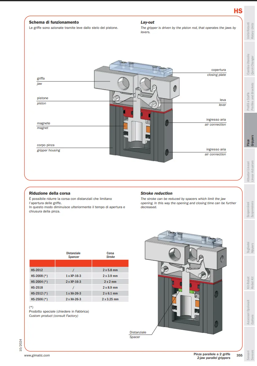 HS là sản phẩm của Gimatic thuộc danh mục kẹp gắp, nằm trong dòng kẹp song song được sử dụng cho các hệ thống robot và tự động hóa.