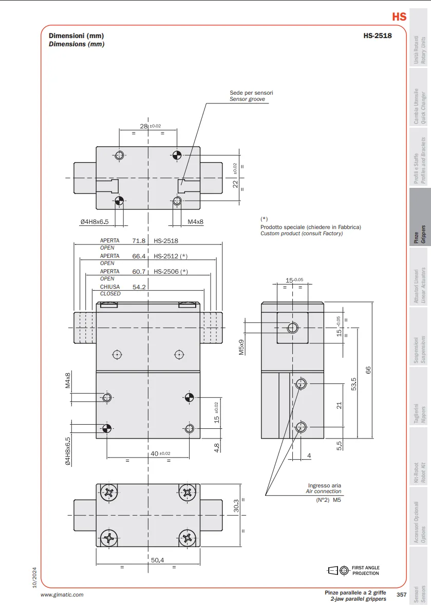 Các thông số kỹ thuật chi tiết có thể tham khảo trong catalogue chính thức của Gimatic.