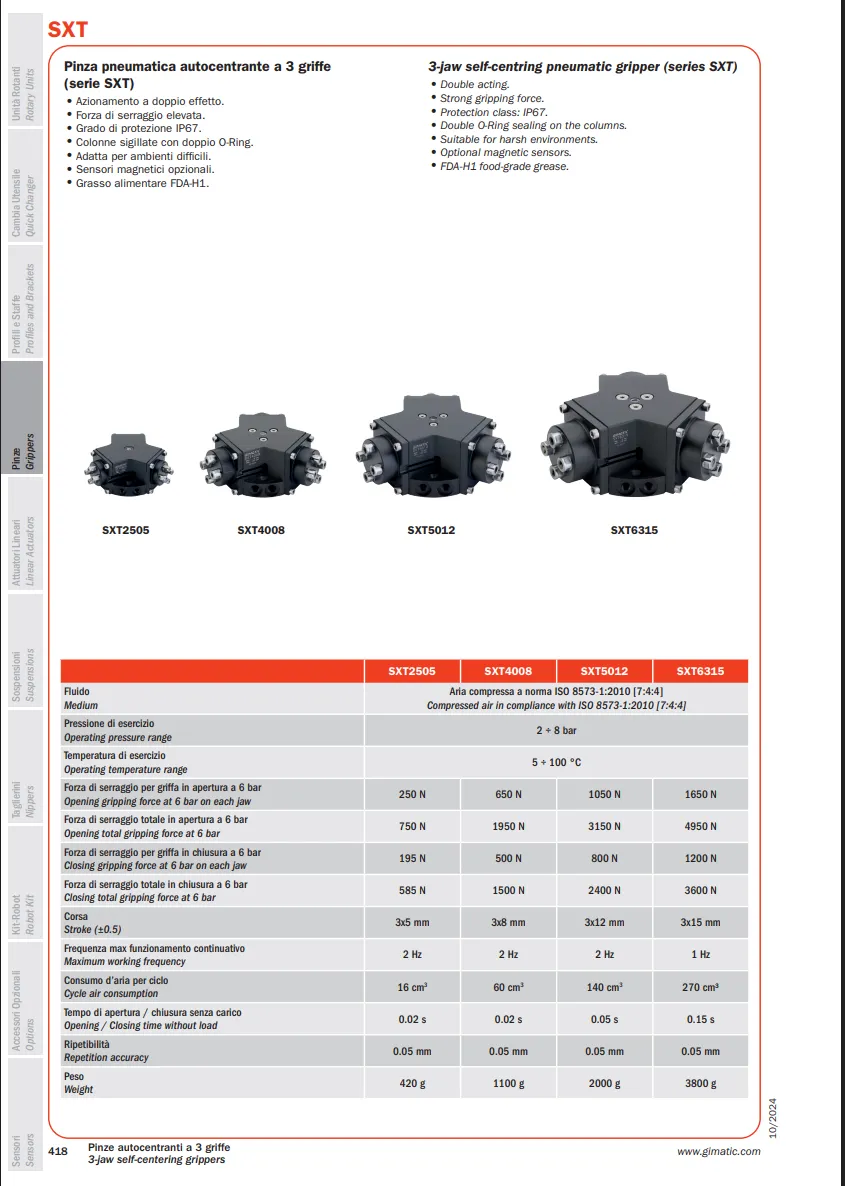SXT là dòng kẹp 3 hàm thuộc danh mục kẹp gắp của Gimatic, được sử dụng trong các hệ thống robot và dây chuyền tự động hóa.